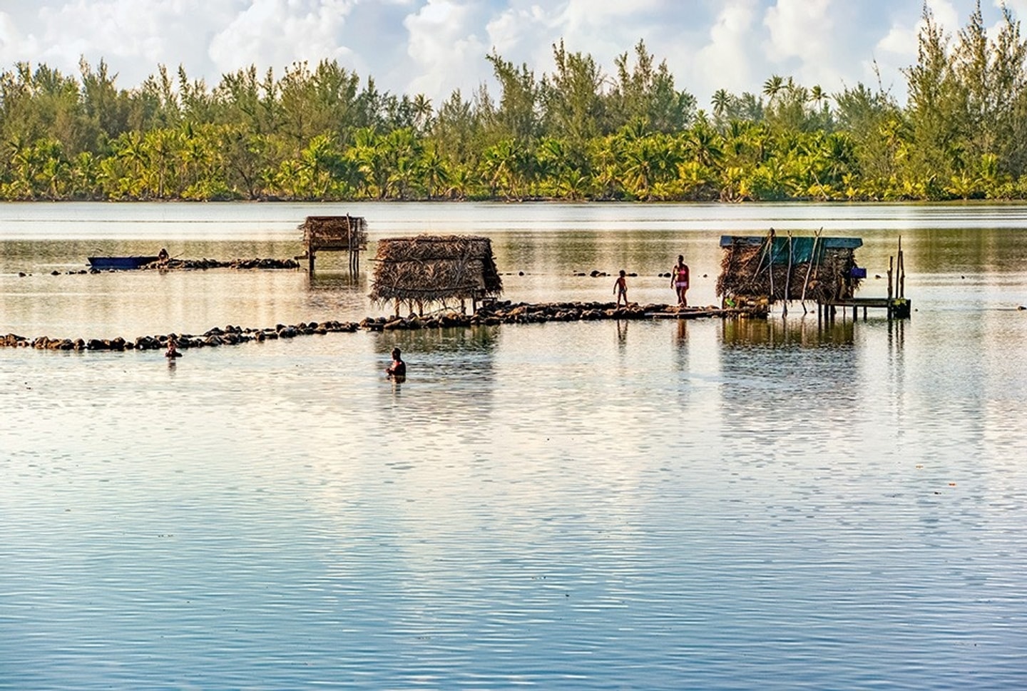 Indigenous fishing village in Huahini, French Polynesia. Image from Julia Watson’s “Lo-TEK Water, A Field Guide for TEKnology” (2025).