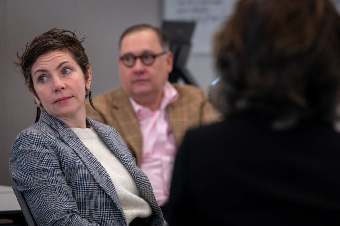 St. Louis Mayor Cara Spencer (left) and WashU Chancellor Andrew D. Martin welcome attendees to the “Urban Mining and the Circular Economy in Construction” conference Dec. 17. (Photo: Sid Hastings/WashU)