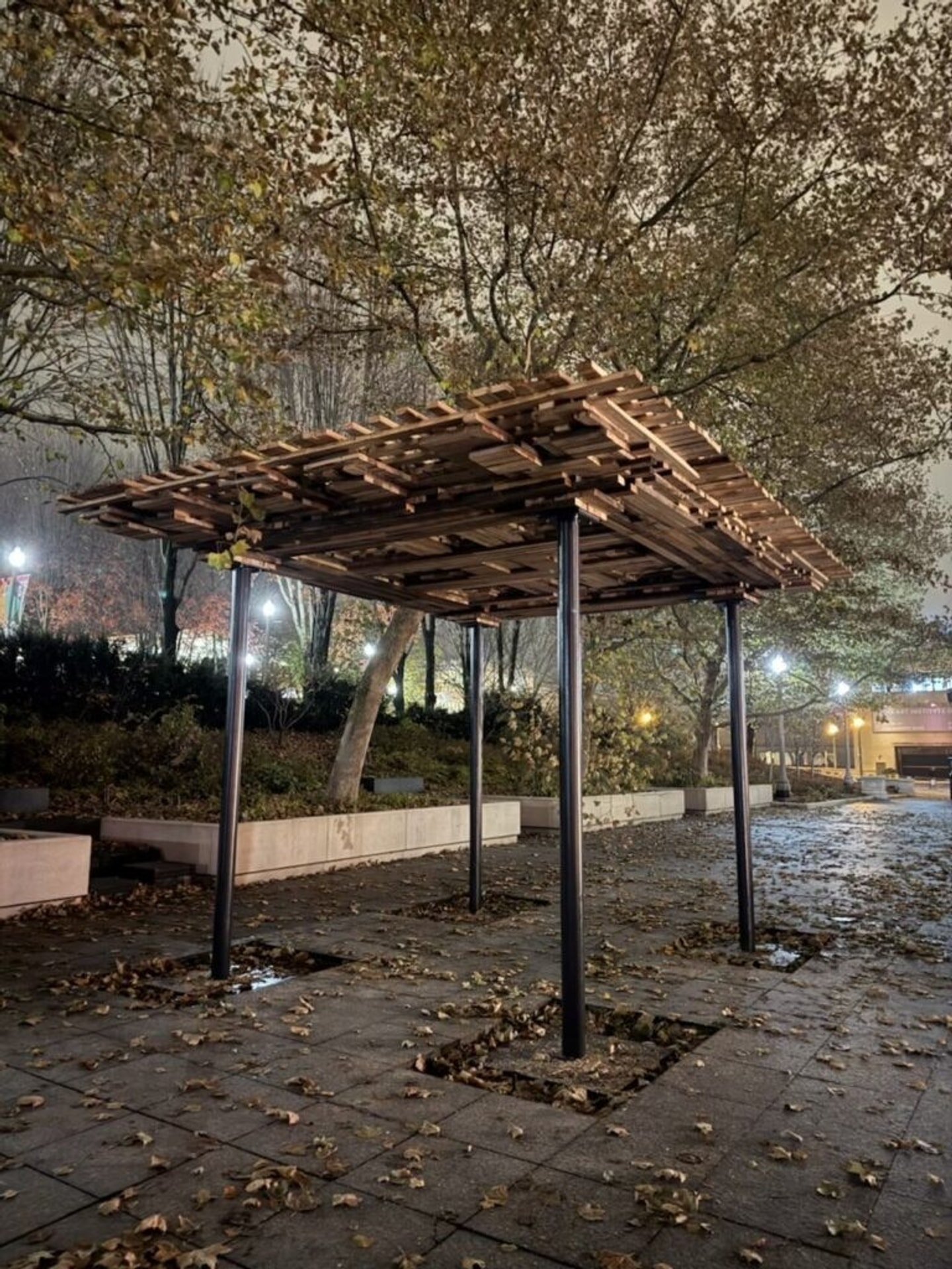 Installed in Millennium Park, Re-SPLAM is almost uncannily strong. In structural simulation testing, it surpassed Chicago snow load requirements, making it a potential alternative to steel or concrete. Further, by actively removing material from the waste stream, and through efficient off-site assembly at a Mid-America Carpenters training center, the pavilion’s construction sequestered more carbon than it released.